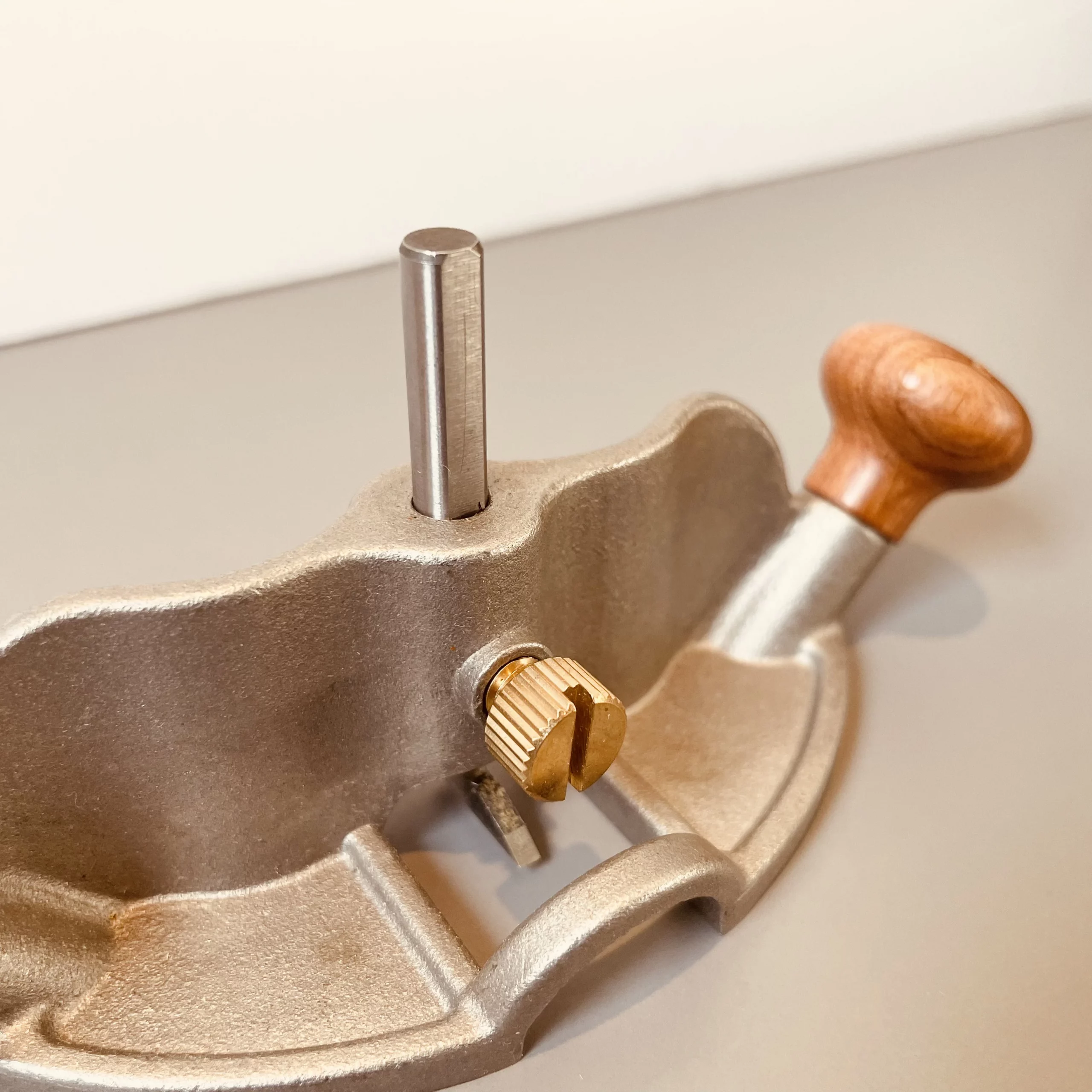 This is a small router plane with a sole width of 100mm. This means wide lapped or halving joints will be hard to do with this plane. However, its small size makes it perfect for finer work, including dovetails, narrow halving joints and even inlay work.