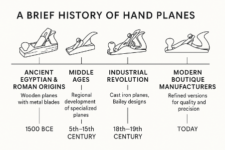 Fast forward to Medieval Europe, where the hand plane began its journey from rough wood-and-stone to something closer to what we recognize today: